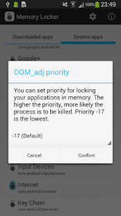 Memory Locker allows you to set OOM_adj priority for locked applications from -17 to -10.